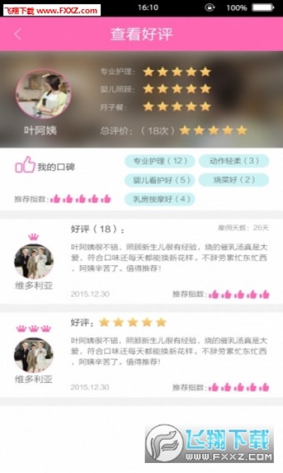 2、详情页中查看月嫂具体信息:等级,薪资,个人头像,生活照片,工作年限。