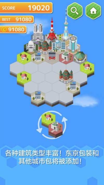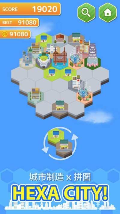 《六角城市安卓版》是一款以城市建筑为题材的休闲益智类手游,游戏集合了拼图的玩法,玩家在游戏中可以不断地挑战高分,建立各种大楼建筑来感受精彩的玩法设定,此版本为安卓版的下载,喜欢的小伙伴们赶紧下载体验吧!