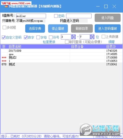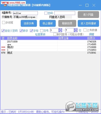 0x3 输入网盘账号后无密码直接进入网盘,有密码输入后再点,不知道密码的可以尝试爆破。点击下方要爆破的网盘目录点开始爆破即可,如果无法出现网盘目录且刷新目录无效的情况请关闭软件,