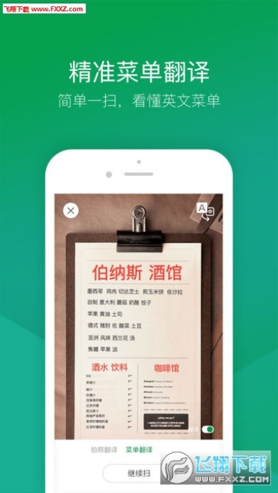 - 拍照翻译:图书、试题、路牌、菜单、广告单...随手拍照,即时获取翻译结果。