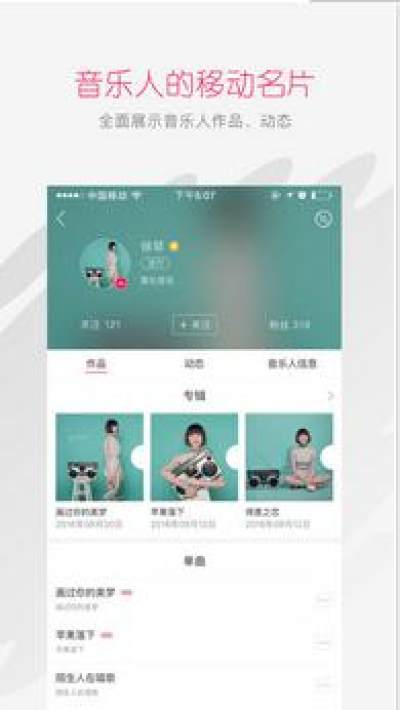 百度音乐人拥有专属的音乐人主页,可展示信息、单曲、专辑、动态、演出、视频,也可将主页分享;音乐人的原创单曲可被用户赞赏,宣传作品的同时还可获得可观的收入;音乐人可通过手机发布文字、图片动态,比如演出照片、幕后花絮、生活状态等,让乐迷更多地了解自己;