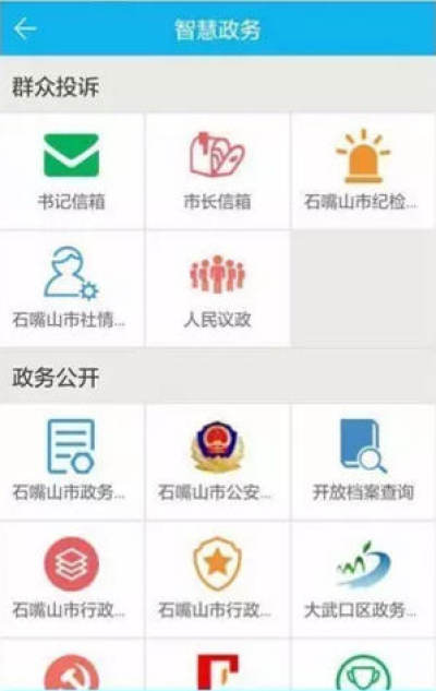 智慧石嘴山平台app以“智慧政务”“智慧产业”“智慧民生”“智慧生态”和“公共服务”为核心,整合全市信用信息服务、健康公众服务平台、电子税务局等应用服务90余项,是集新闻资讯、人民议政和便民服务等于一体的多功能政务服务平台,是全区首家以移动互联网为载体的政府级移动便民平台,初步实现了新闻资讯随时看、群众诉讼随时报、生活缴费随时用的惠民目标。