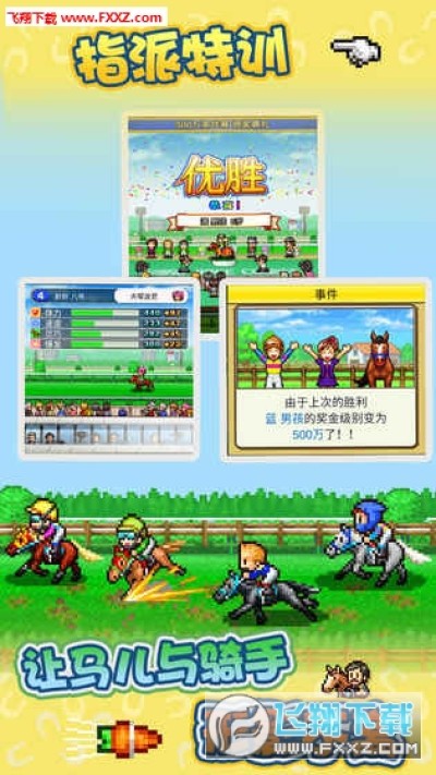 一起来寻找拥有体力、爆发力等特殊品种的马匹,对它进行训练吧。在比赛上获得优胜后,奖金会不断升高,还可以参加国际赛事。