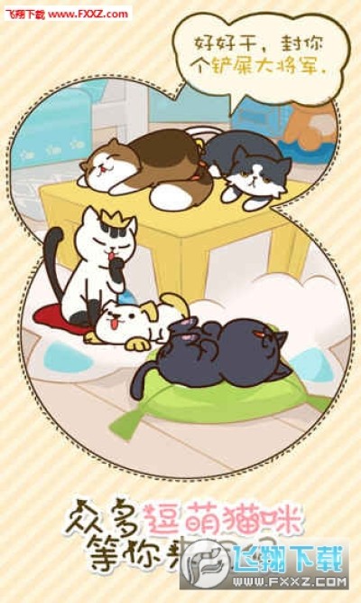 数百种各色的猫咪等你来照顾,海量萌猫等你带回家!和你中意猫咪培养好感度就可以领养到啦!挑选你最得意的萌猫和其他铲屎官去比赛吧,谁家的猫咪最可爱呢?温馨猫宅可发至朋友圈,亲朋好友来串门,帮铲猫沙,帮洗澡,帮捣乱。