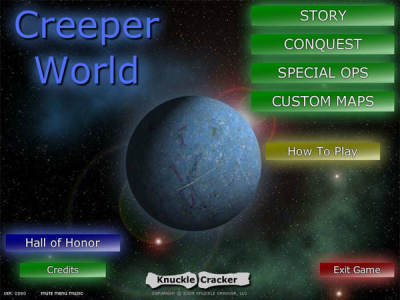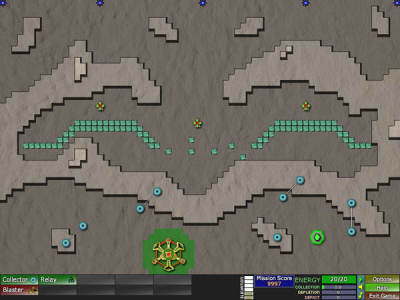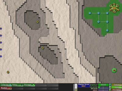 爬行世界是一款比较另类的即时战略游戏,玩家将会在每一关固定的场景中拥有一个能量核心,通过建立节点占领土地并将能量核心的内能传送到地图各个角落,所占领区域会被染成绿色,而地图上的蓝色点会持续污染地图,被污染地区为蓝色。你需要占领土地,并在绿色区域中建立和移动激光炮消除污染区域,并逐步夺回土地。每一关的最终目的是将地图中多处特殊的绿色装置与核心连接则为过关。