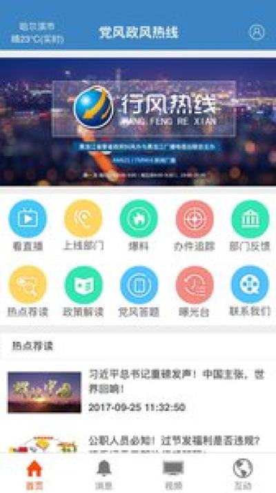 《党风政风热线》节目是以“听民言、知民愿、解民忧、顺民意,将关注民生进行到底”为节目口号,以“推进行风建设,树立行业新风,化解各种矛盾,促进社会和谐”为宗旨的一档演播室,本app提供其直播、发布新闻、评论、互动和反馈等功能。