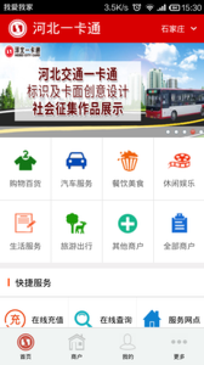 1.通过河北一卡通app即可办理各种相关生活服务业务