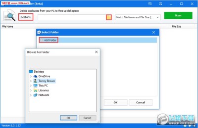 启动智能重复查找器时,首先要注意的是左上角的文件位置选择。请点击“添加文件夹”,选择桌面,Windows库,硬盘驱动器等位置来扫描重复的文件