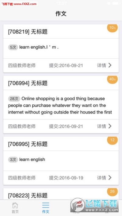 批改网app批改网手机版,老师可以使用手机版布置、查看、批改(支持语音点评)作文;学生可以使用手机版提交作文,查看安句点评。增加了社交功能,老师和学生,学生和学生之间可以像微信一样聊天。老师发布作文,评论作文,修改分数,学生都会收到消息通知,无论学生是否在线。