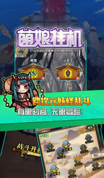 《萌娘挂机》是一款青春萌系风格的妖怪收集竞技手游,游戏玩家将要收集各种妖怪,与萌娘签订契约,再起妖魔副本挑战,玩家指尖竞技,策略比拼百鬼组合随心,专属技能合体奥义大招,扭转乾坤,妖怪乱斗精彩无限!