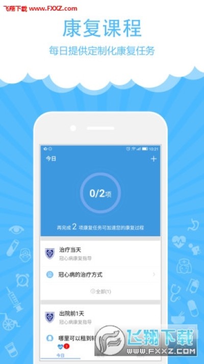 康复助手是一款病友在医院治疗期间和出院后的康复小管家,它将为您在入院、手术、出院前后的不同时期呈现贴心的引导,伴您一起迈向康复之路!