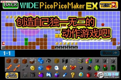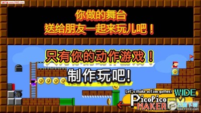 手游《游戏制作器(Make Action! PicoPicoMakerEX)》同样采用了马里奥式的跳跃闯关玩法,简单的左右以及跳跃的虚拟按键就是游戏全部的操作玩法。而游戏的关卡则少了横屏卷动的区间,也就是说玩家的行动都被限制在了一个不大的区域内,然而就是在这有限的区域内,游戏的创作者为玩家们提供了多达78个关卡供玩家游玩,在游戏过程中各种马里奥中的经典元素都被一一重现,并且这些关卡的难度都设计相当困难,喜欢挑战的玩法不妨来试试看。