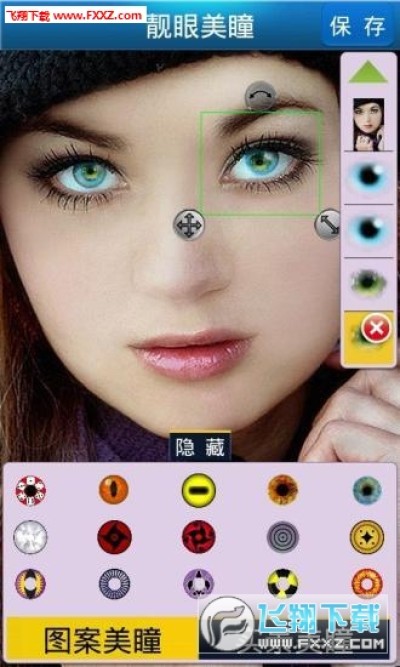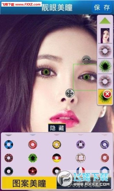 2、内置多种美瞳图案,通过图层叠加,使照片人物眼神更具神采飞扬;