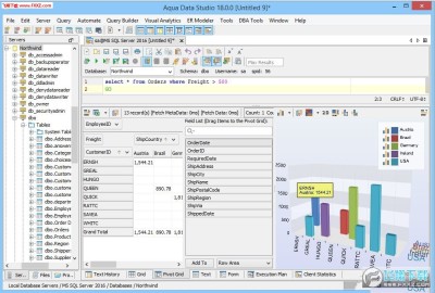 查询和分析工具在18.0增强高级查询分析器允许您连接到任何数据库服务器并执行SQL查询。SQL格式化程序,语法着色和自动完成功能可以节省您编写SQL语句的时间。查询结果可以通过快速过滤和导出功能在文本,网格,轴或窗体视图中查看。 SQL历史记录允许您快速检索任何先前的查询,而不会丢失它们。 枢轴网|图表工具|自动完成|SQL历史和存档