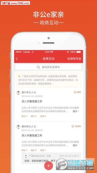 2、政商互动模块支持非公人士与政务人员进行交流沟通。