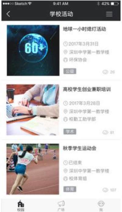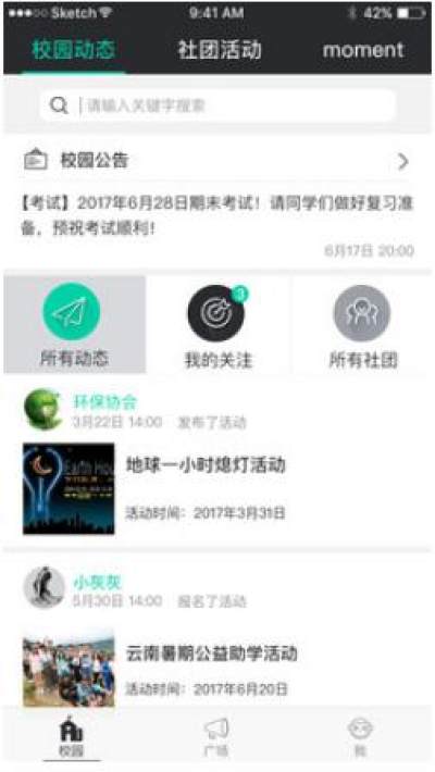 1、发现活动:实时发现参加校园活动,精彩活动,不容错过!