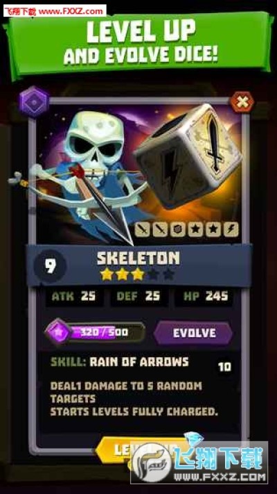 游戏很好玩。前排的三颗骰子可以发动技能,后排三颗骰子只提供骰面。前排中间骰子靠星星闪电蓄能,前排左侧靠闪电蓄能,前排右侧靠星星蓄能。骰子升级会强化攻击×2的概率和护甲数值。怪物下落会眩晕1回合。不知道抽到的骰子是否一样,我抽到火龙很强力。