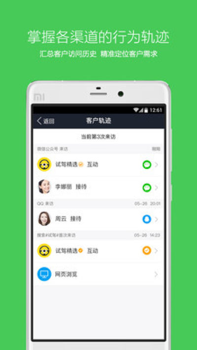 腾讯企点登录平台中用户想要管理自己历年的客户更加的方便,用户想要在线咨询也非常的方便,可以直接通过名称首字母搜索,也可以自己建立小组,行为轨迹一目了然,需要的小伙伴们快来下载腾讯企点登录平台手机版软件体验一下吧