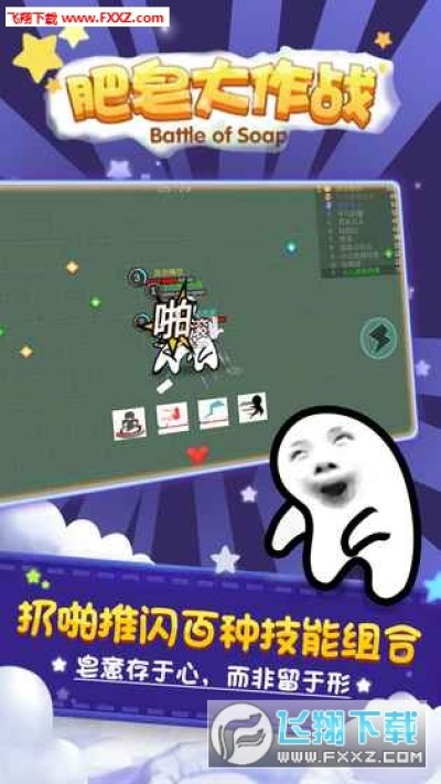 喂,兄弟你的肥皂掉了!《肥皂大作战》是一款搞笑题材的超魔性休闲io类手游,奇葩的角色形象,趣味的游戏场景,配上超多的技能组合,一定会让你感受不一样的“基情”,万千宅友在这里等着你,快来洗澡,开启巨奇葩的澡堂大冒险吧!