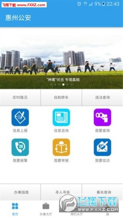 “惠州公安”APP,秉承便民利民的服务宗旨,让群众享受更便捷的指尖服务。应用中包括公安资讯、办事指南、网上办事大厅、预约大厅等服务功能,同时不断推出创新功能,如自助移车、寻人寻亲、新生儿重名查询等,实现极具惠州公安特色的应用服务。