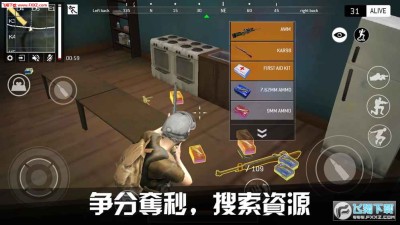 终极战场生存是大逃杀类型的游戏,每一局游戏将有32名玩家参与,他们将被投放在无人岛的上空,游戏开始跳伞时所有人都一无所有。