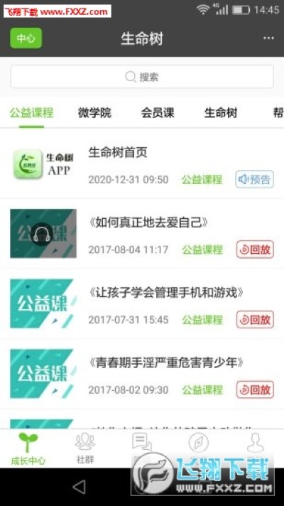 生命树app是一款非常方便的线上家庭教育平台,目前孩子的教育非常重要,这款软件主要提供一些关于孩子心理、知识为主的教育课程,同时生命树app还会是针对家长打造相应的培训课程,这款软件会从多方面为孩子的教育提供相应的服务!