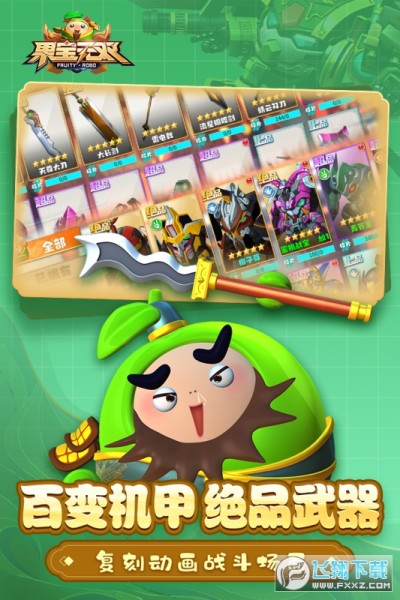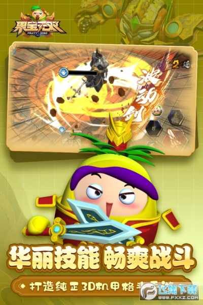 《果宝无双》是《果宝三国》手游原班制作团队的重置之作,是一款以经典国产动画《果宝特攻》形象为原型制作而成的正版ip授权3D机甲格斗类型手游。游戏内集合《果宝特攻》经典动画元素,将上百款机甲角色经典还原!于不同的战斗场地上,通过不同的战术搭配,运用华丽的战斗技能配合操控机甲,体验极具流畅与打击感的战斗模式,收集养成共同打造最强果宝战队,充分满足动画粉丝对于果宝战甲的喜好,带来别具一格的战斗体验!
