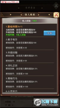 每个红颜都有属于自己的技能,技能针对指定门客进行属性加成。