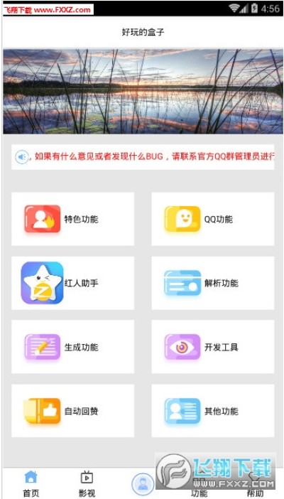 好玩的盒子是一款手机上好用的工具软件,支持一些qq的红人辅助,比如点赞之类的,还支持多媒体播放,优酷啊、pptv什么的,以及一些好玩的功能,P图、恶搞表情包等等,需要的朋友可以看看。