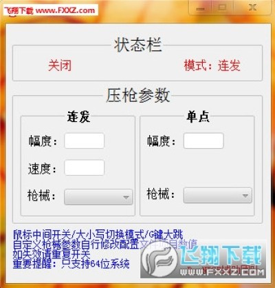 鼠标中间开关/大写连发/小写单点/G键大跳/(需要默认C键为蹲,空格键为跳跃)