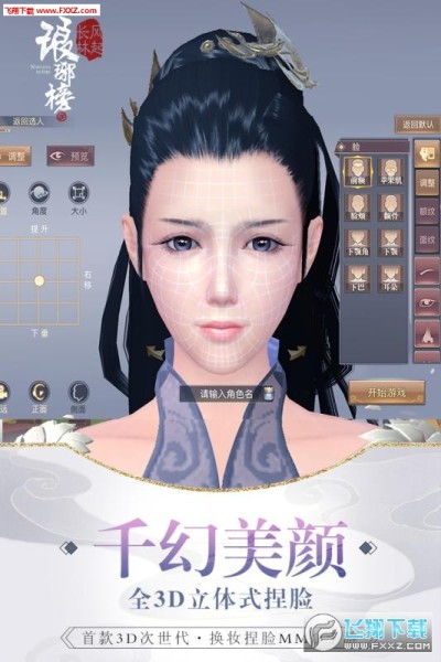 玩家可以在游戏开始时随心定义自己的相貌,唯一的限制就是玩家们的想象力。从发型到各个面部特征,再到面部的各类妆纹,均可手动选择样式并根据网格化的平面直角坐标系来调整其对应的位置和大小。
