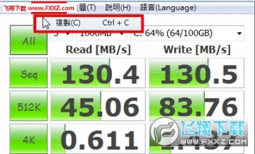 4K QD32:针对NCQ、AHCI模式做随机做读、写检测(4K位元组,伫列深度为32)