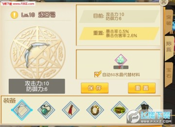 突破:使用【星梦矿】为材料对装备进行强化,提升装备的基数属性数值。强化不会失败但是强化越高消耗的素材就越多。