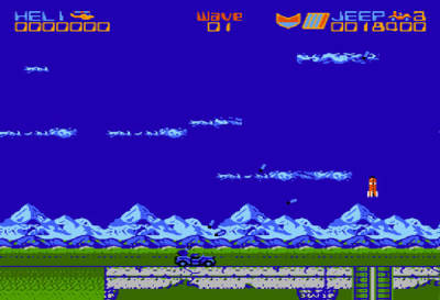 1990年,科学家海德完成了人造脑“MH-C2”,但是,“MH-C2”超越了它发明者的智力,并开始背叛了他们的一切指令。它阴谋毁灭世界,并以神的名义来统治整个人类,“MH-C2”开始了它控制世界的行动……。以上就是这款游戏的故事背景,游戏一共八关,玩家在游戏里分别操纵直升飞机和吉普车(这也是本作最大亮点),通过互相掩护配合,过关斩将,最终爆机。