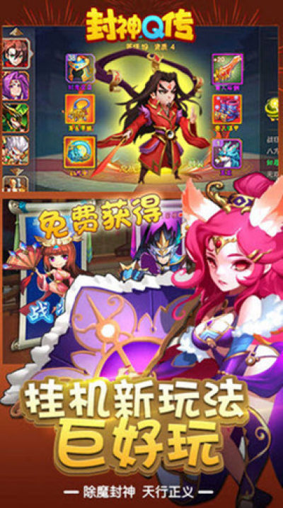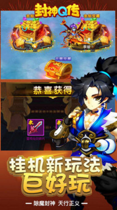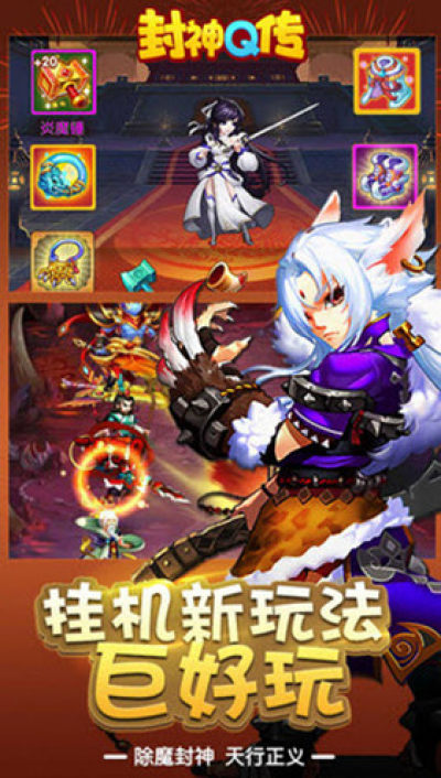 《封神Q传》是以“封神榜”为游戏背景的东方神话主题的挂机游戏。《封神Q传》这款手游大胆创新,游戏模式上给予了玩家更多的自由,不再拘泥于传统手游随时在线的常规模式,让玩家自由的掌握游戏节奏。以新颖的游戏玩法,更是让游戏增色不少。 是一款精美的东方神话类挂机+卡牌养成的手游。在手机游戏中《封神Q传》绝对是一款值得大家一试的手游精品。