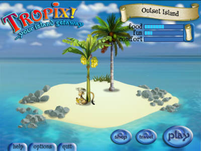 猴岛大冒险是一款综合性的休闲游戏,游戏的主题为一只困在孤岛上的猴子,你需要参与各种小游戏,如保龄球、荡绳子、纸牌等来获取资金,为孤岛上的猴子改善生活,购买食物、有趣的装饰和娱乐方式,如果你有足够的货币,你还可以购买新的小岛。