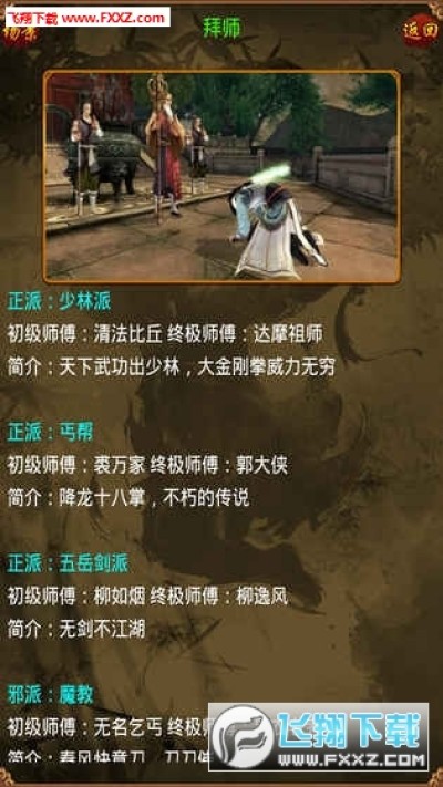 俗话说“不同的选择,决定不同的人生”。少林、丐帮、五岳、日月神教、唐门、魔教,六大门派,每门派可学习数十种绝学武功,不同的人生,不同的江湖,任你选择。