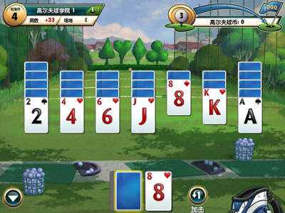 球道接龙2是一款以高尔夫球为主题的接龙游戏,按照下方卡组中牌的点数选择正序或者逆序的顺序点击上方的纸牌,在牌组翻完之前尽量将所有的牌都收到下方去。剩余的纸牌数量会按照高尔夫球的杆数进行计分,剩余一张牌是“小鸟”,两张牌“双鹰”,或者“一杆进洞”清空盘面。根据不同的场地,还有需要铲除的草地,需要绕开的沙坑,需要痛殴的地鼠等等元素在里面,再结合优质的奖励和有趣的迷你游戏,是一款难得的佳作。