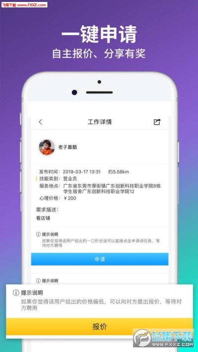 趣客兼职app,就近分配工作,兼职随时找。给用户们提供三公里内的兼职招募,如果有需要就来下载吧。一键申请,提供更好的服务。