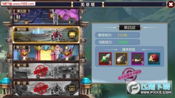 无尽的挑战和乐趣,测试自己实力的极限。无尽塔从第一层开始,越往上难度越高,奖励同样也越来越丰厚。挑战无尽塔虽然不会消耗体力,但每天都会有限定的挑战次数,挑战失败则扣除一次挑战次数。若是当天的挑战次数耗尽,那就只能等第二天再战。什么?担心第二天还要辛辛苦苦爬塔?放心,只要你已经通过了五的倍数层,第二日可直接被传送到该层。比如昨天你通关到24层,那么再次挑战就可以直接到达20层,并从21层开始今天的挑战。