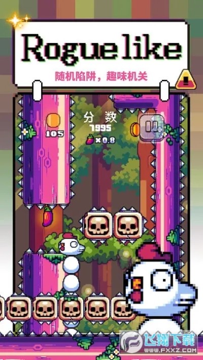 咕咕鸡向上冲是一款操作简便(玩家只需要点击和左右滑动,向上跳跃躲避障碍)&魔性十足的休闲游戏。在只能向上的冒险世界里不停向上冲刺,获取高分!复古像素风别具一格,获取游戏内金币解锁更多皮肤和能力挑战关卡、击败BOSS&挑战高分!关卡内障碍随机组合,每次挑战都有新鲜体验~