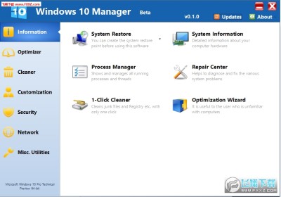 信息:获得系统和系统上的所有硬件的详细信息;帮你找出的Windows,Office产品安装密钥;显示运行在你机器上进程和线程的详细信息;Windows 10 Manager提供1点击清理功能自动清扫系统;维修中心可以帮助您解决各种系统问题。