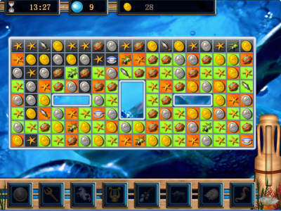 亚特兰蒂斯传说是一款传统的消除类游戏,通过交换相邻方块达到三个相同方块连接消去的目的。每次消去都会让该格背景上的颜色去掉一层,红色褪去变成绿色,当所有的绿色全部清除时则通过该关卡。游戏中需要你收集金币来购买一些装饰品,而每种方块对应一种面值,消去的越多,获得的金币越多。