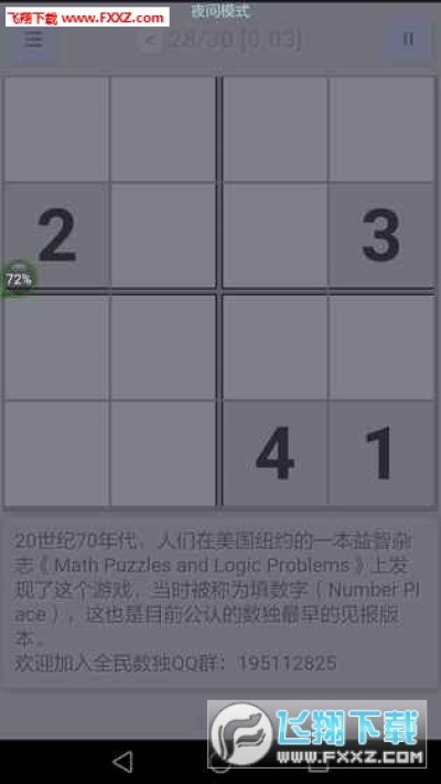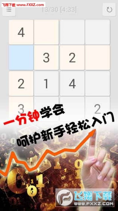 一款界面简洁的数独游戏,不仅支持标准的9宫数独,而且支持4宫、6宫等入门级玩法。难度线性递增的题库,以5大关,220小关的形式呈现,覆盖入门到竞赛级难度。