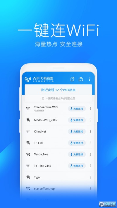 【便捷】点击一键查询,秒速发现免费WiFi热点,一键安全连接,操作简单,上网就是这么轻松。内置中国移动CMCC、中国联通ChinaUnicom、中国电信ChinaNet等运营商热点,安全连接,方便便捷。
