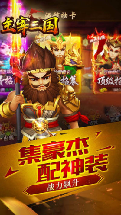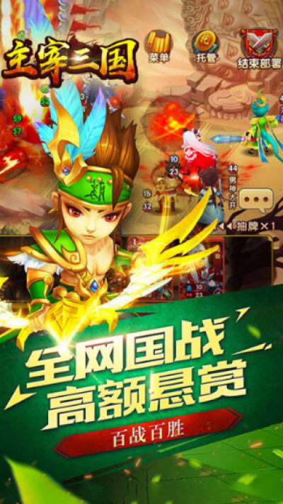 2017年新概念战旗卡牌《主宰三国》破茧重生,真3D诚意创新之作。以崭新战斗模式,定义热血三国。风靡神将,酷炫登场,打破传统的魏、蜀、吴三国鼎立的阵营,三国名将并肩作战,斩千军,策天下,谋定三国,全新画面展示,给你不一样的指尖体验,创造属于您的君王之路!