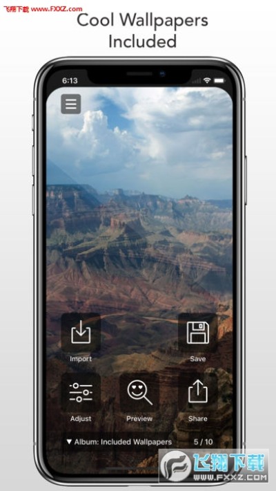 notcho专门为iPhone X,你可以输入任何照片或图像,然后保存一个专门创建的图像,可以设置为在应用程序中的照片,隐藏切口上方的屏幕壁纸的第一个应用程序。或者你可以选择任何免费的壁纸。