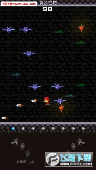 如果选的是飞刀哥,就会左右发出飞刀攻击怪物;