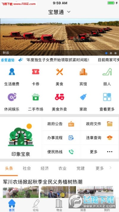 “宝慧通”是黑龙江省农垦宝泉岭管理局打造的一款基于政务宣传、民生服务、电子商务等为一体的掌上终端APP。与住建局、城管局、民政局、公安局 、商务局、社保局、交通局、通信公司、物业公司、取暖单位、多家银行等单位联合而成。汇聚各类政务以及便民服务资源和本地生活类服务资源。