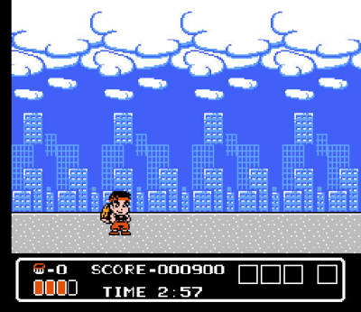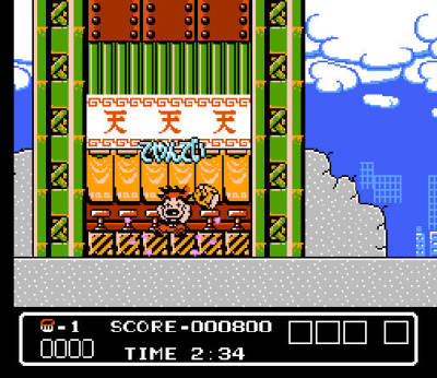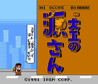 这款游戏叫"大力工头",是个难度中等,十分讲求技巧性的游戏,FC红白机上有着这款作品的移植,但是还是街机上感觉更好玩.游戏中主角比较脆弱,一碰就哭的家伙,开始就是一群施工队的伙计砸了他的家,于是太郎奋起追击开始大闹施工队.游戏处处搞笑气氛,而且场景中障碍物的设置都很巧妙,还是要求你把主角培养成一个左右腾挪的高手,因为游戏的难度会逐步加大的.其实IREM的作品风格除了表现混乱体裁,还有就是突出一点:BT.没错,穷尽所能的BT.好在他的这个ACT作品清新爽口,随手玩玩感觉还是满不错的.